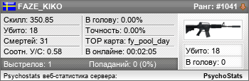 FAZE_KIKO занимает в статистике ранг #1041 из 4,911Не указан