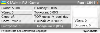 CSAdmin.RU | Gamer занимает в статистике ранг #2912 из 4,904Не указан