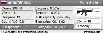 MONSTERKILL занимает в статистике ранг #1240 из 4,911