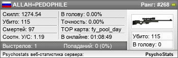 ALLAH=PEDOPHILE занимает в статистике ранг #268 из 4,925