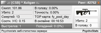 .:: [CSB] ^ Xuligan ::. занимает в статистике ранг #2762 из 5,710