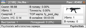 ~ [CSB] | 6eJIka ~ занимает в статистике ранг #3401 из 7,346Не указан
