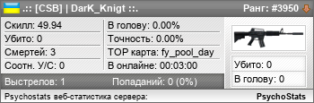 .:: [CSB] | DarK_Knigt ::. занимает в статистике ранг #3947 из 7,337Не указан