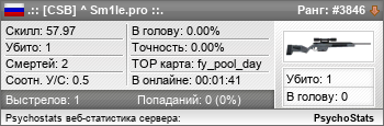 .:: [CSB] ^ Sm1le.pro ::. занимает в статистике ранг #3845 из 7,347Не указан