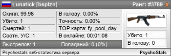 Lunatick [bsplzn] занимает в статистике ранг #3785 из 8,390Не указан
