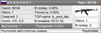 H E A D S H O T занимает в статистике ранг #3763 из 8,289Не указан