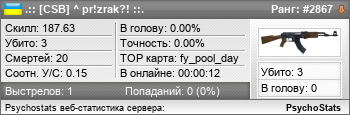 .:: [CSB] ^ pr!zrak?! ::. занимает в статистике ранг #2863 из 8,288Не указан