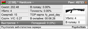 ~ [CSB] ^ Hardcore ~ занимает в статистике ранг #2720 из 8,276Не указан