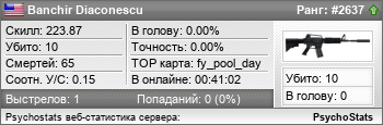| 1 | 2605 | ~ [CSB] | Headshot ~ | 4 | 12 | 0.33 | 227.45 |