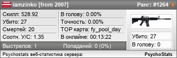 iamzinko [from 2007] занимает в статистике ранг #1262 из 8,899Не указан