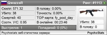 QwazzaR занимает в статистике ранг #1113 из 8,685