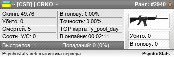 ~ [CSB] | CRKO ~ занимает в статистике ранг #2940 из 4,911Не указан