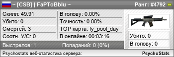 ~ [CSB] | FaPToBbIu ~ занимает в статистике ранг #4792 из 9,185Не указан